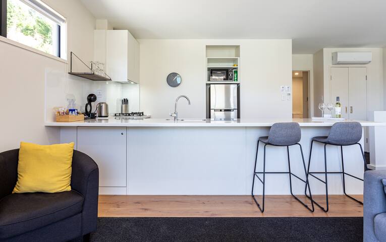 Directly across the road from the lake and Queenstown's main biking/walking trails. Absolutely stunning views of the lake & mountains. The "KEA SUITE" is our first floor fully self contained 73m2 one bedroom apartment. Perfect location just 5 minutes to town, ski field base, shopping centre and airport.